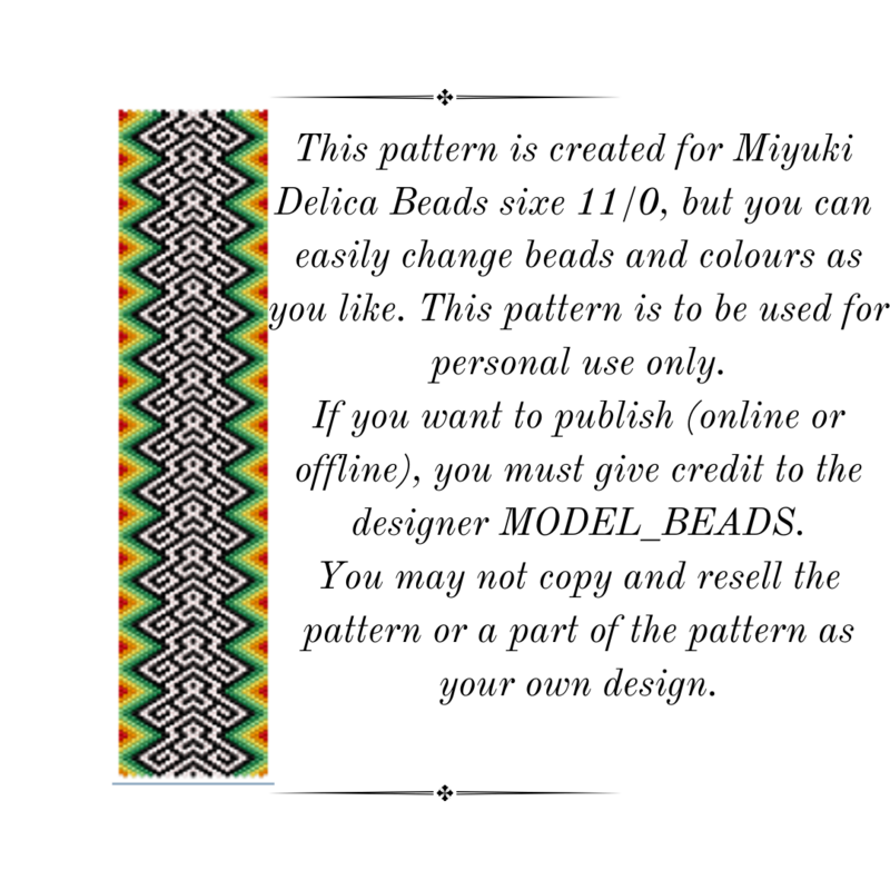 The "Zephyr" bracelet pattern is perfect for both seasoned beaders and beginners looking to challenge their skills. With detailed instructions and a clear color guide, you'll find creating this stunning piece both enjoyable and rewarding. Once completed, the bracelet exudes a sense of sophistication and style, making it a versatile accessory for any occasion.