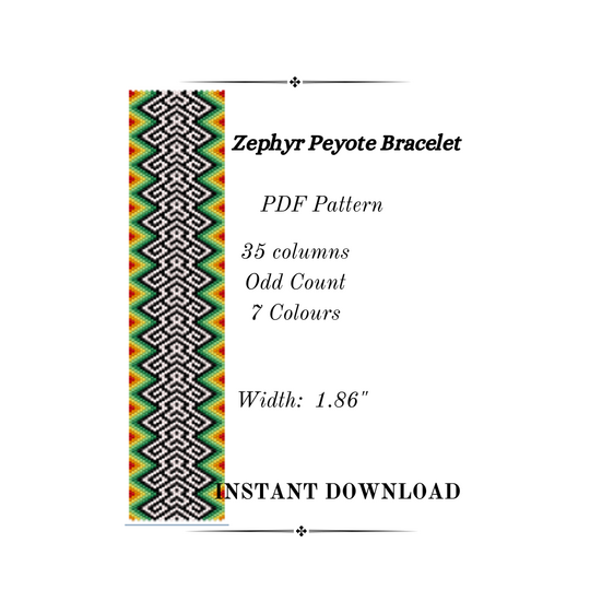 Crafted with attention to detail and a passion for design, the "Zephyr" Geometric Peyote Stitch Bracelet is more than just a pattern – it's an expression of artistry and elegance that will add a unique touch to your jewelry collection. Let the "Zephyr" pattern inspire your creativity and elevate your style with its breezy, modern charm.