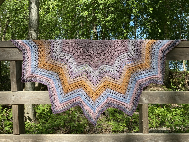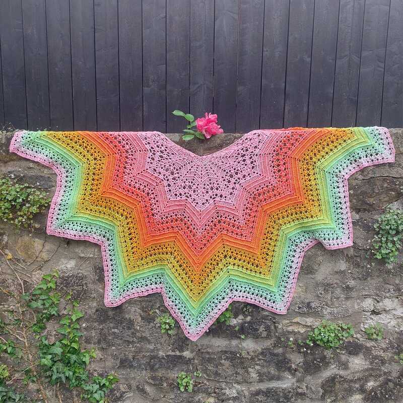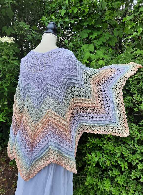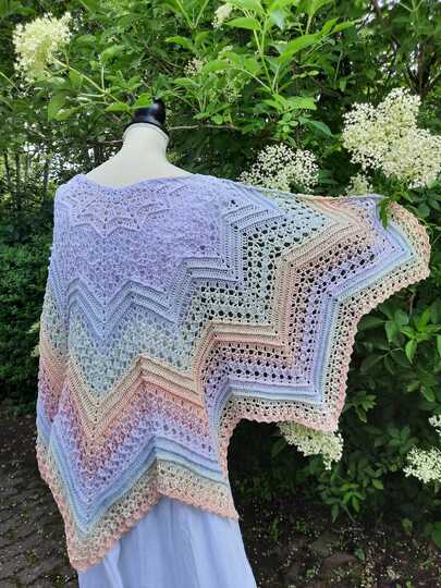 A star-shaped shawl that you can also wear as a poncho with buttons or a shawl pin.