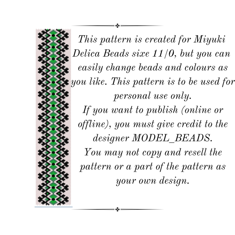 This pattern is created for Miyuki Delica seed beads size 11, but you can change colors and beads as you please.
