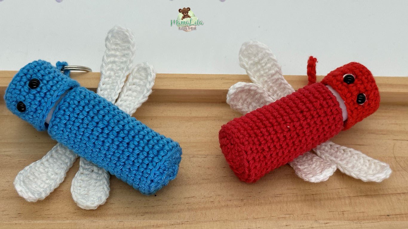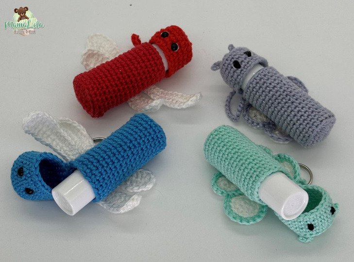 Mit dieser Häkelanleitung könnt ihr euch die im Artikelbild gezeigten Lippenpflegestift Hülle in Form eines Schmetterlings oder einer LIbelle zaubern.