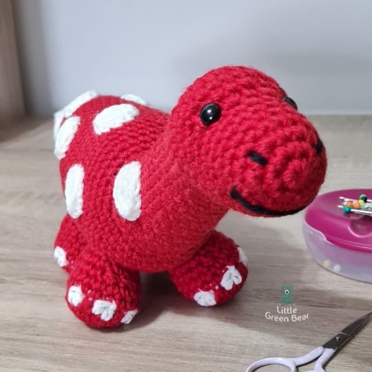 Don the diplodocus spends all day grazing on the soft foliage from the tops of trees and stripping the bark further down. This wears his teeth out pretty quickly but it’s ok, they just keep growing back. He is 17 inches long and 6 inches tall (when made with the recommended materials).