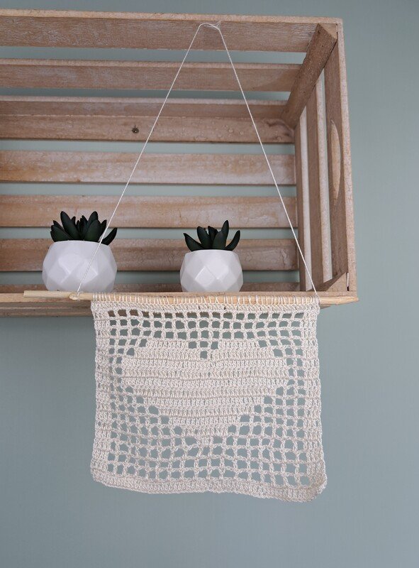 This is a crochet saving package for 3 wall hanger patterns, for a cute Heart, Butterfly and crown wall hanger. Light and very Summery wall hanger decoration. Bring some summer into your house with this cute decoration, the pattern can be worked in many different Colors to bring some extra Color into the house. The pattern contains two row-by-row explanations, one for filet crochet beginners and one for filet crochet experienced or can be worked with the graph. It is very important to read the info’s in the pattern before starting.