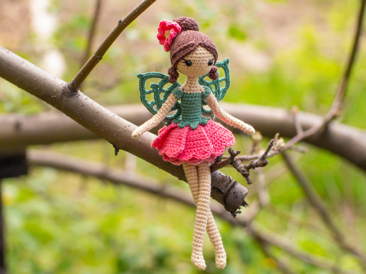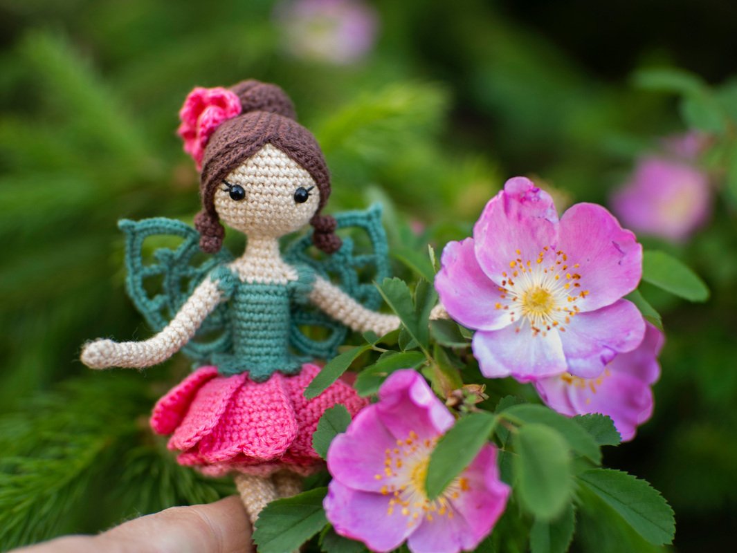 You can make bright and elegant Wild Rose fairy by following this crоchet pаttern. The doll is made on a wire frame of chenille wire.