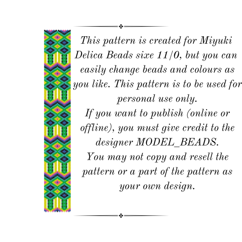 Introducing the "Forest Prism" peyote stitch bracelet pattern, a captivating design that brings the vibrant hues and intricate textures of the forest to life. This pattern features a mesmerizing blend of greens, yellows, blues, and purples, intricately woven to create a striking mosaic that evokes the beauty and serenity of nature. Perfect for both beginners and experienced beaders, "Forest Prism" provides clear, step-by-step instructions to guide you through crafting your unique piece of wearable art. Embrace the elegance of the wilderness with this enchanting bracelet pattern, ideal for adding a touch of natural beauty to any outfit.
