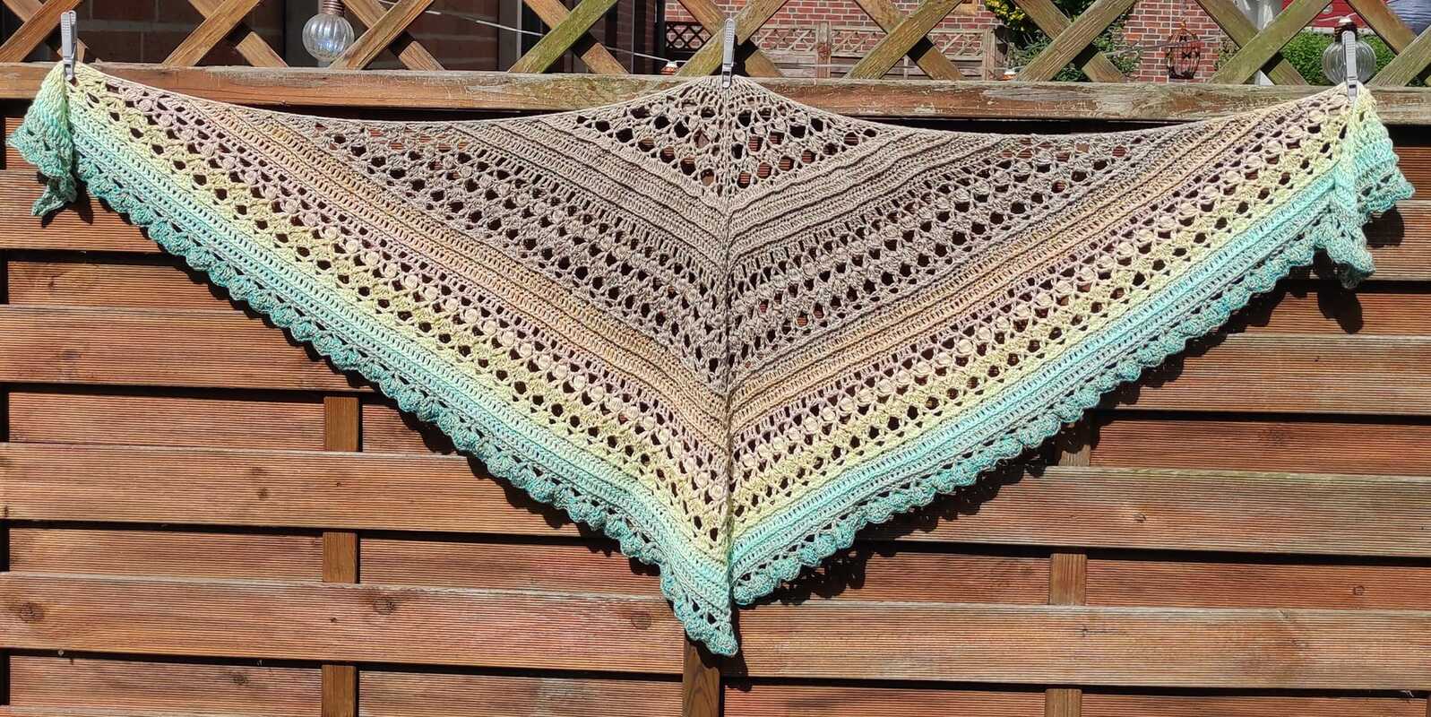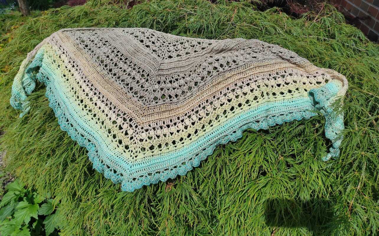 The file includes the pattern for a classic triangular shawl and also a wide shawl.