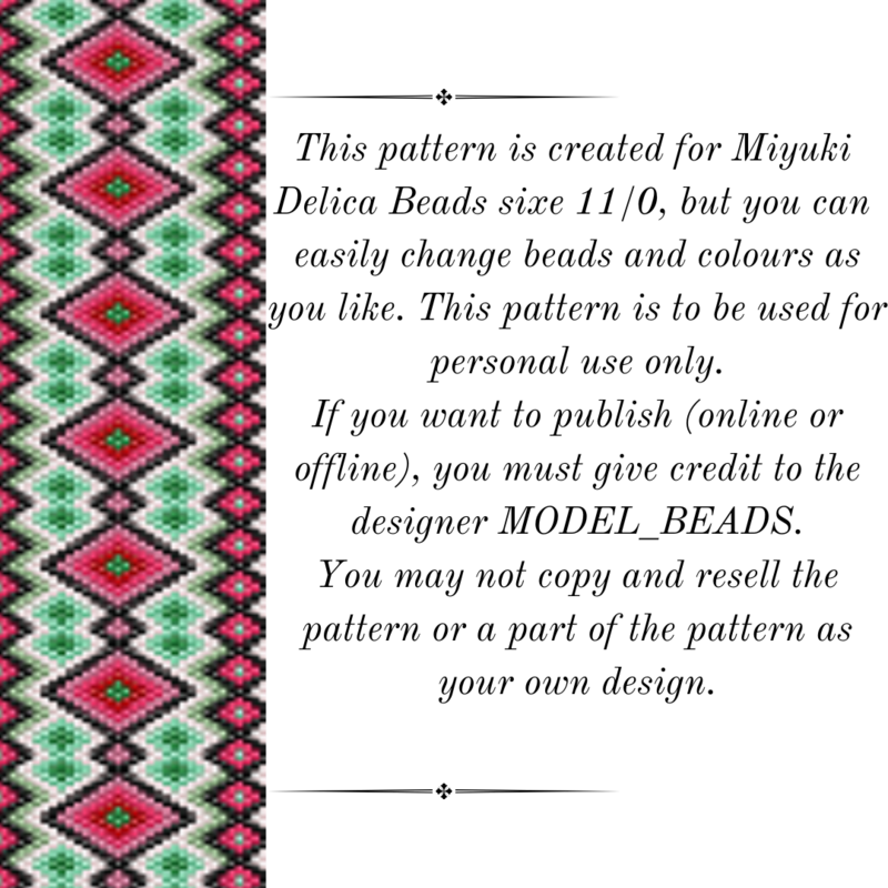 This pattern is created for Miyuki Delica seed beads size 11, but you can change colors and beads as you please.These patterns are for personal use only. Do not share, sell or copy these patterns.