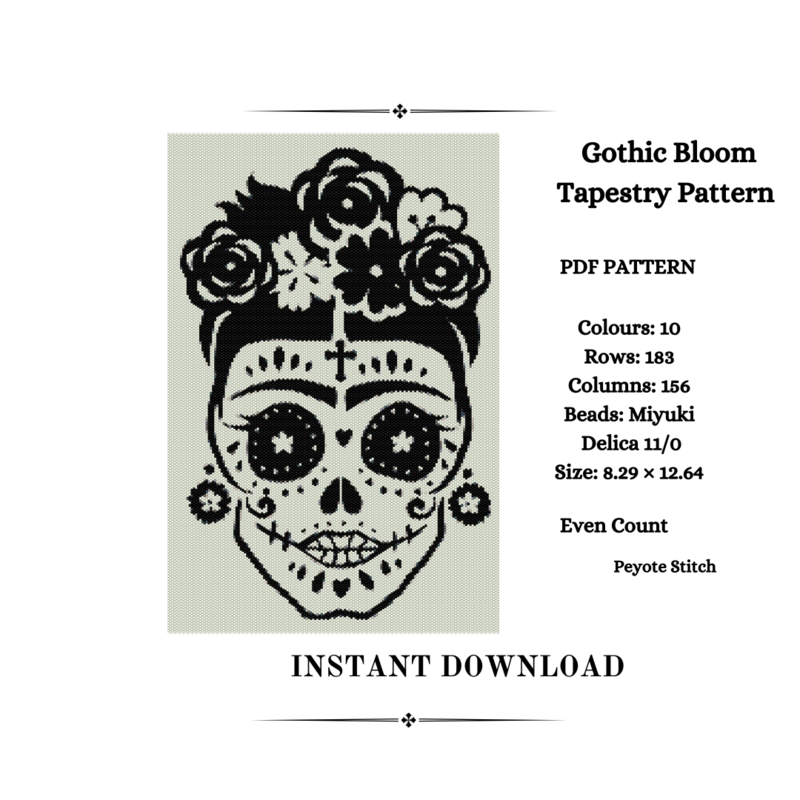 Gothic Bloom" is ideal for experienced beaders looking to create a dramatic and elegant tapestry. Instantly downloadable, this pattern provides step-by-step instructions for a seamless beading experience.
