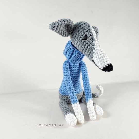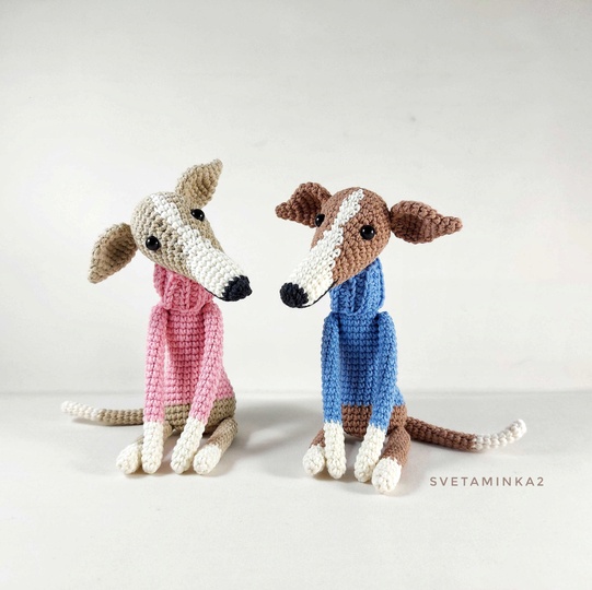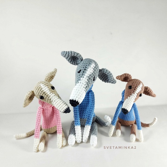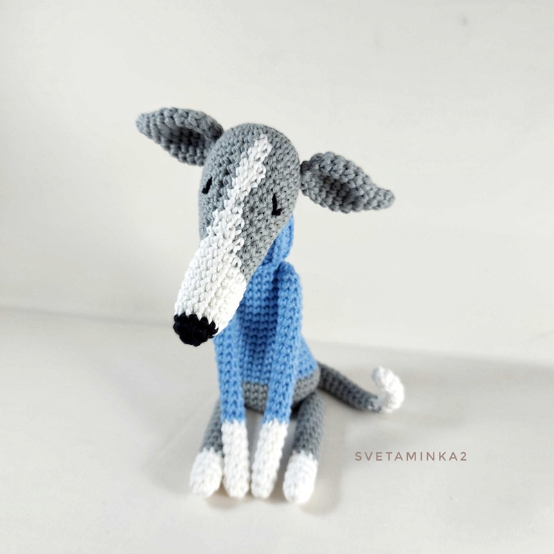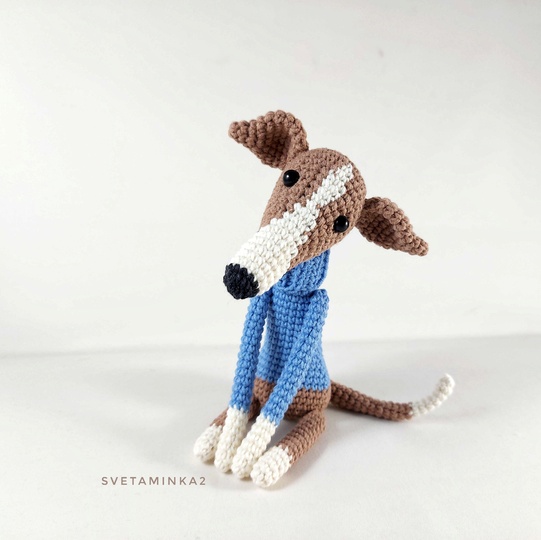 Crochet Pattern Dog 'Italian Greyhound in a 'Sweater' to make your own amigurumi for Greyhound, Whippet, Galgo, Italian Greyhound, Lurcher, Sighthound (downloadable pdf file) in English (US terms), very detailed, very clear instructions and tips with lots of photos for each step. The original pattern by svetaminka2.
