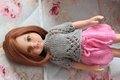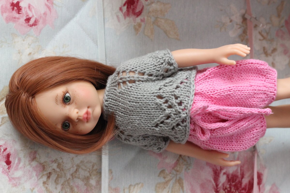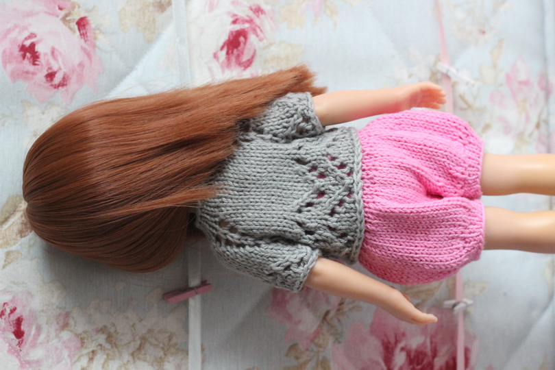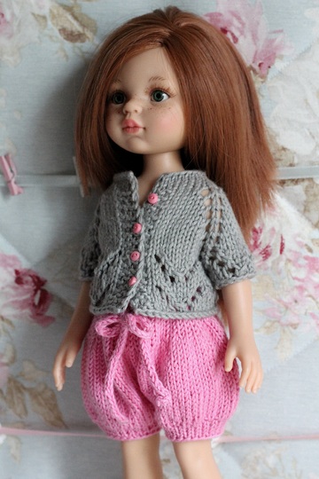 The set consists of a lovely shirt and pants. The shirt is knitted in a single piece from the top-down. Has 4 buttons. An ideal gift for the little dolls´ owners!
