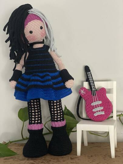 Purchase the "Doll Midnight Crochet Pattern" to receive a DIGITAL PDF CROCHET PATTERN, allowing you to start crafting immediately. Please note that this purchase includes the pattern, not the stuffed doll.