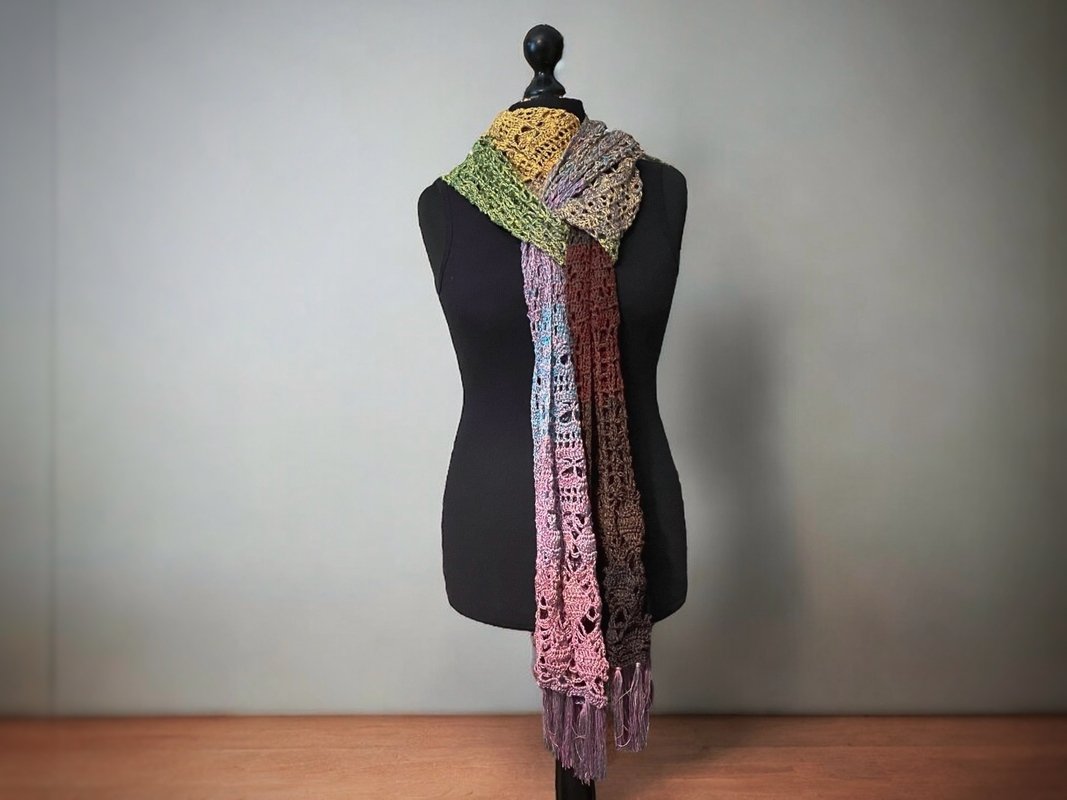 The summery 'With one another' scarf was created as a CAL in our Facebook group.