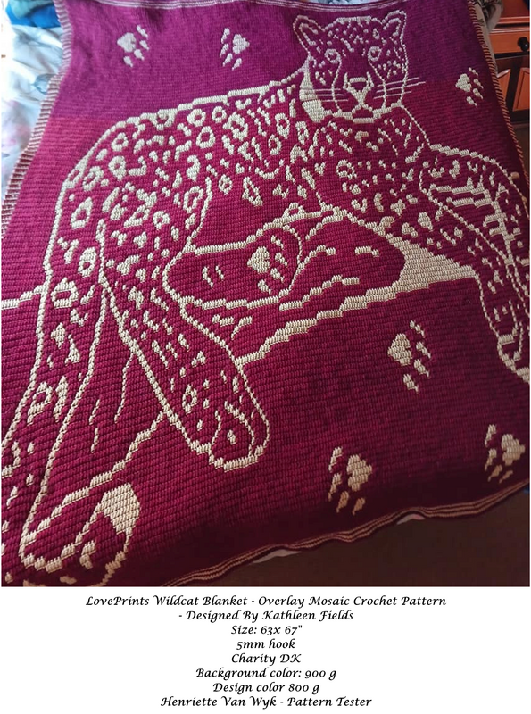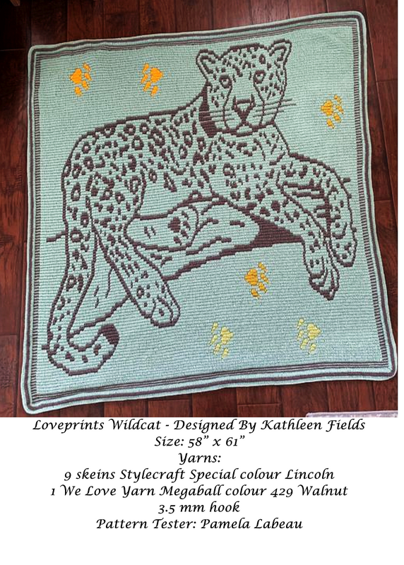 This LovePrints Wildcat is comfortably relaxed just like you or the person that receives this beautiful handmade full size blanket that you create using this pattern. Colors are suggestions, be free!