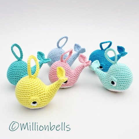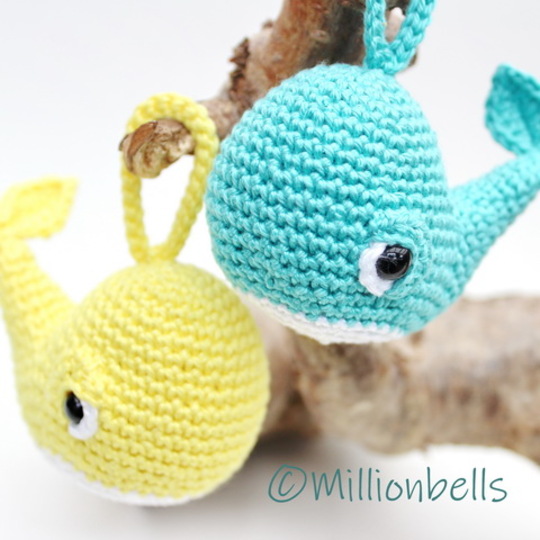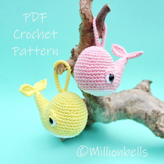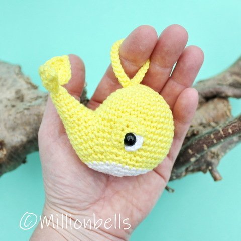 This PDF crochet pattern (US terminology, amigurumi style) will guide you to crochet an adorable Whale Keychain, as shown in pictures, made using sport weight cotton yarn and crochet hook C (2.5 mm). You can use this keychain in different ways; as Christmas tree ornament, purse / back pack charm, rear view mirror charm, bookmark charm or hairband decoration.