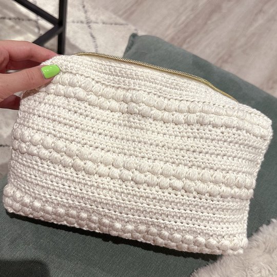 Easy-to-follow crochet pattern with pictures for a make-up bag, that accompanies you on all journeys!