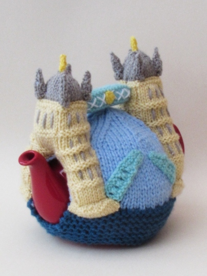 This product is the knitting pattern only; to knit your own Tower Bridge tea cosy.