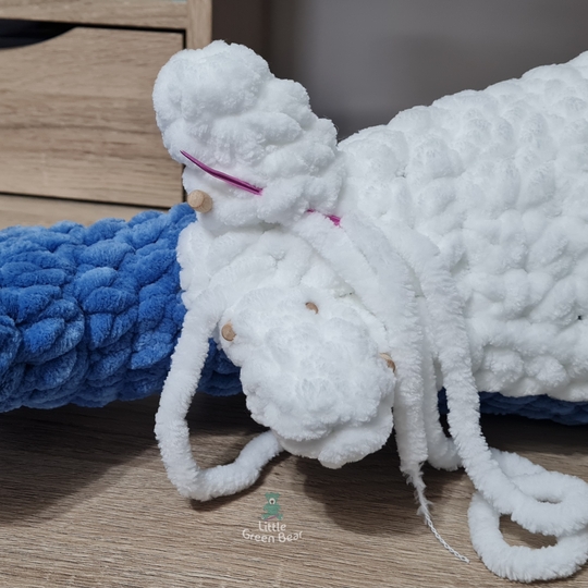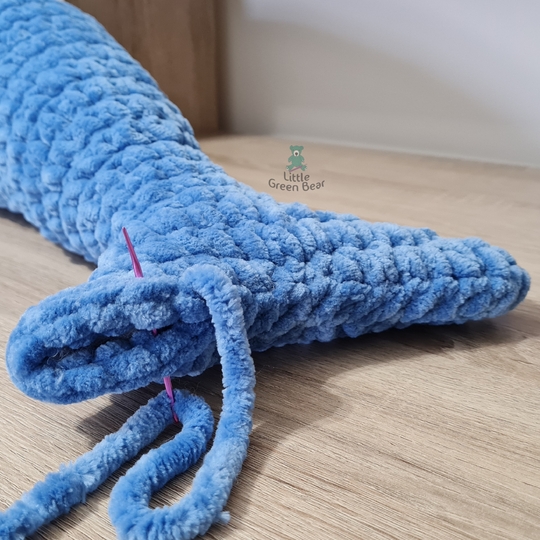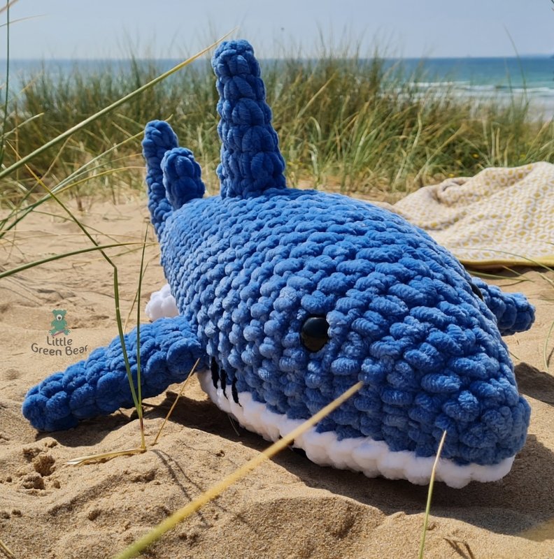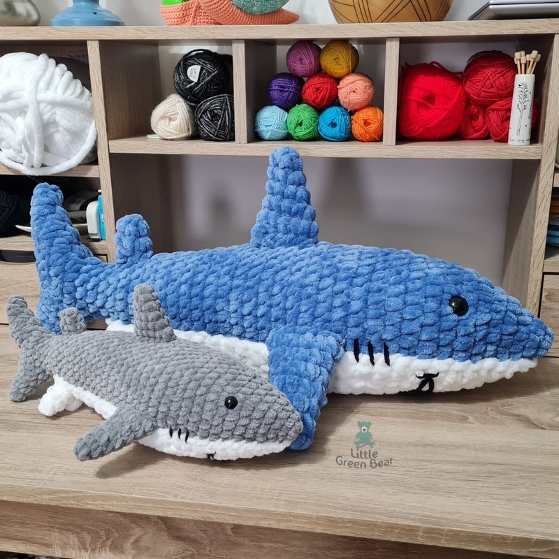 I’ve made Shannon the shark using a jumbo #7 weight yarn. This is ideal for a soft and huggable plush toy and is a pretty quick make. You can decide if you want to make your shark with or without the white underside piece. Shannon can also be made in super chunky yarn, with a smaller crochet hook. She is 26.5 inches long in jumbo yarn (when made with the recommended materials) - in super chunky weight yarn she is 15.5 inches long.