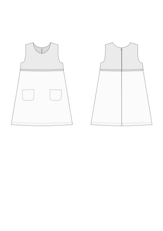 Create a stylish and versatile A-line dress with the "Gemma" sewing pattern! This sleeveless dress features practical pockets, a decorative ribbon, and a concealed zipper, making it both functional and fashionable. Perfect for any season – wear it alone in summer or layer it with tights and a T-shirt in winter!