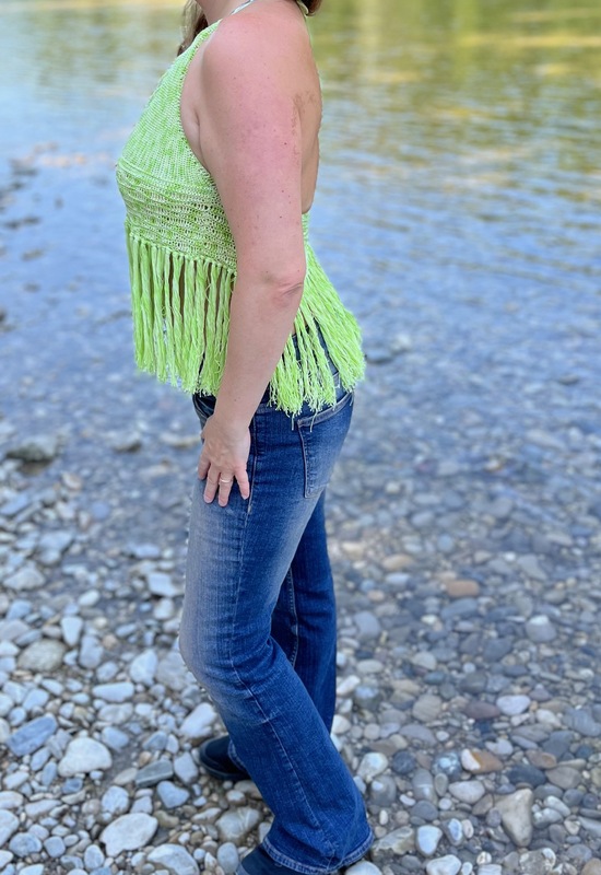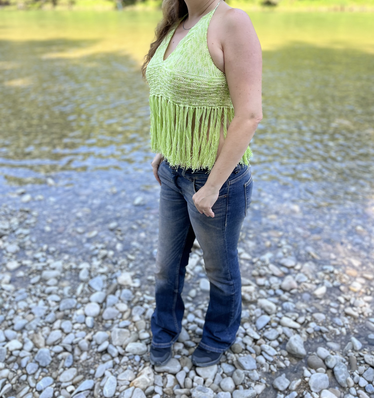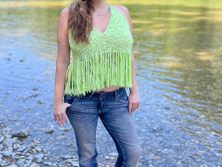 If you have leftover yarn in a brighter color, then this fringed top is just the thing. Whether at a festival or for the beach, the top is an eye-catcher.