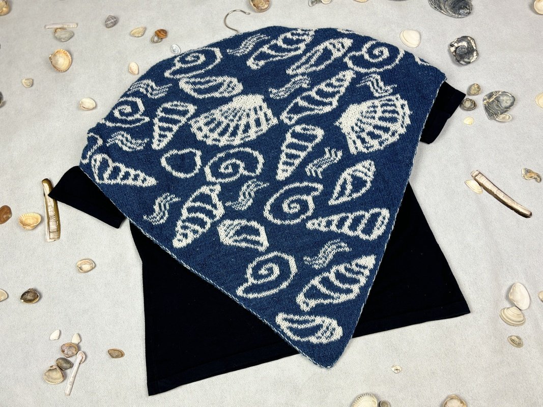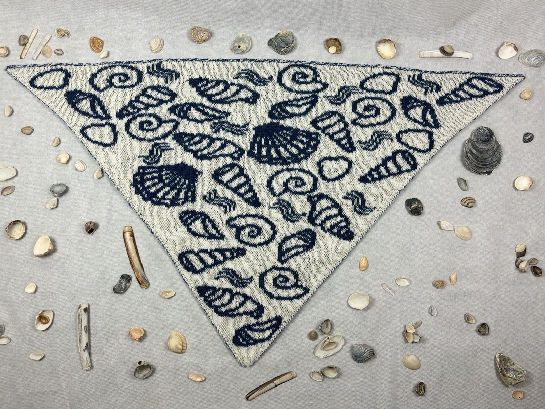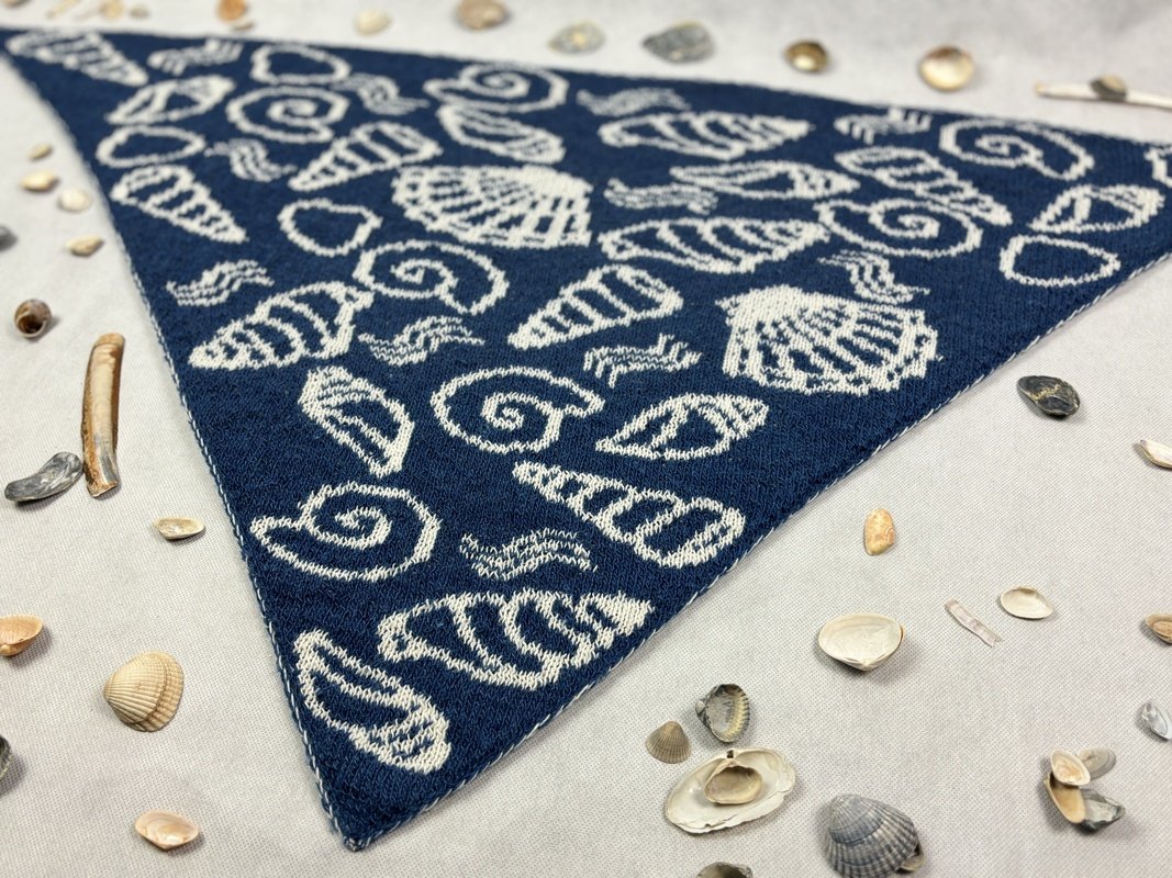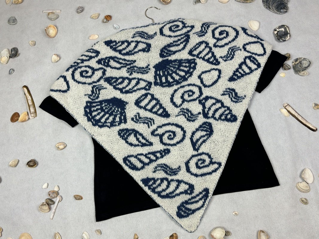 The winning theme of the 2024 theme worlds "Maritime, sun, beach and sea" immediately appealed to me and inspired me to design this triangular scarf "Sea Treasures". Even as a small child, I was fascinated by the beautiful shells that you could just find on the beach. We made things with them, but some shells were simply too beautiful and ended up in a treasure chest where we looked at them from time to time. Even today, I can't just walk past all these beautiful shells on the beach. It doesn't take 5 minutes and I already have another handful...