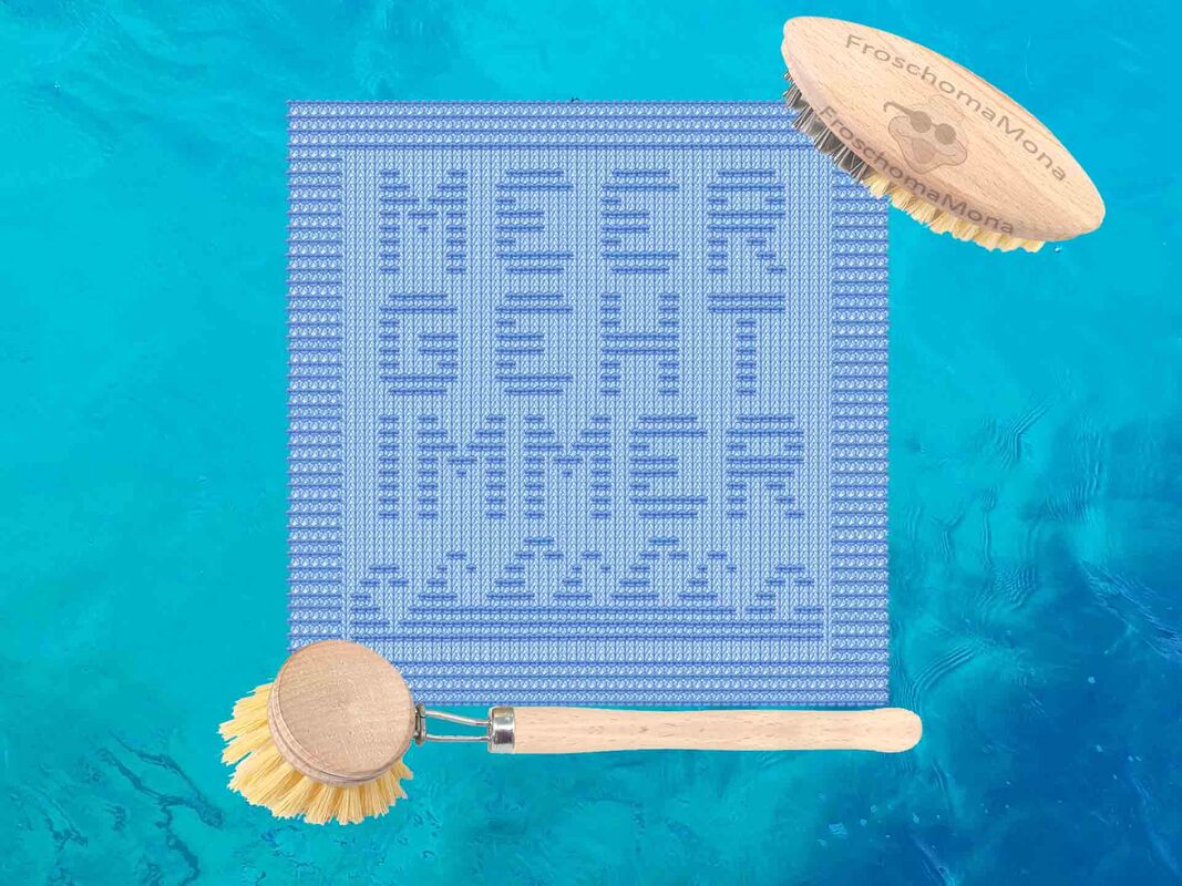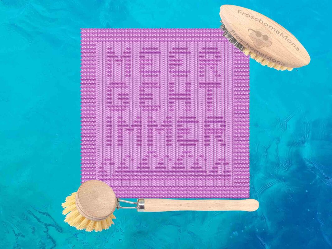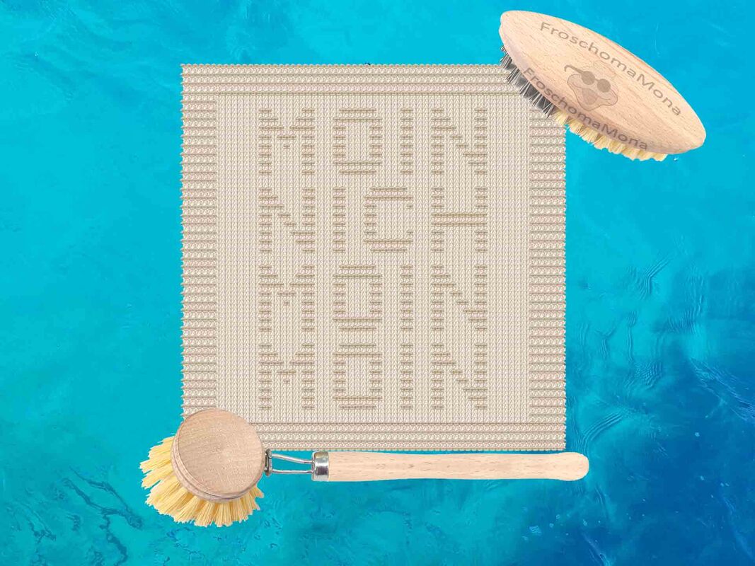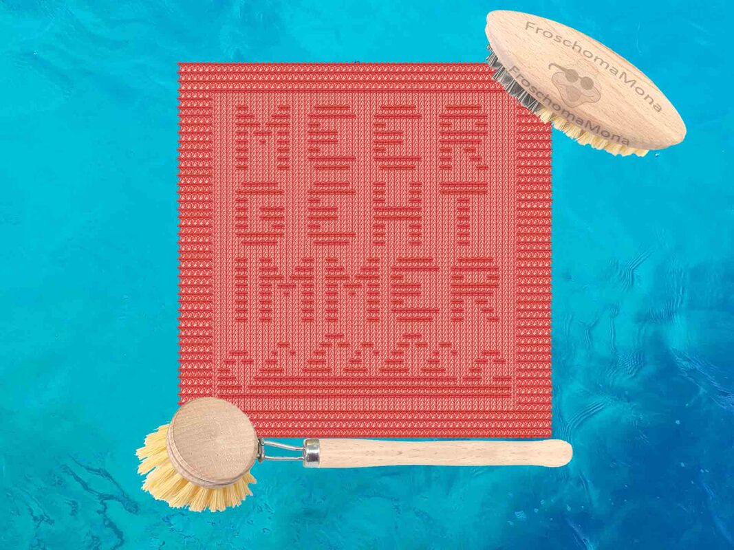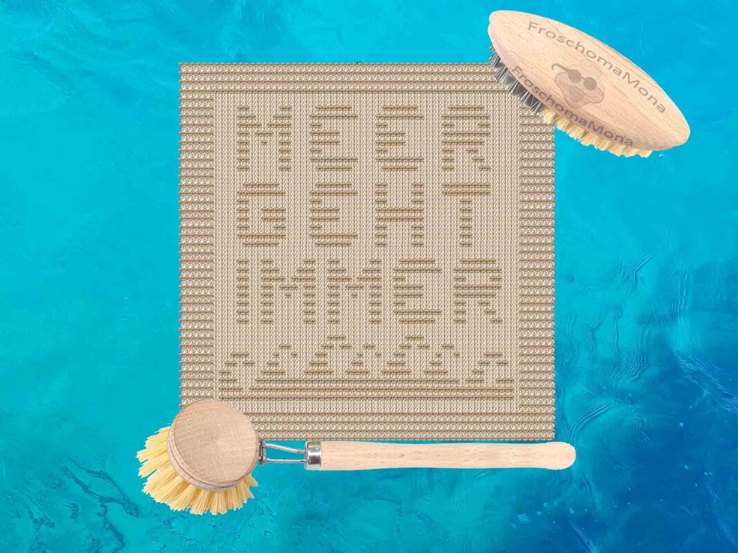 Neben der Anleitung bekommst du noch eine Vorlage für 16 verschiedene Banderolen zum Ausdrucken, falls du das Spültuch verschenken möchtest.