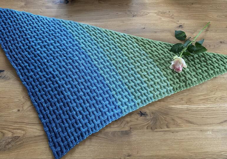 Das Tuch kann kleiner, aber auch größer gearbeitet werden, je nachdem wie viel Garn du verwendest.
