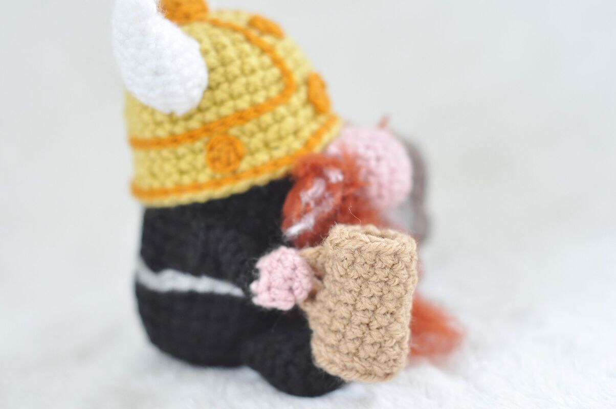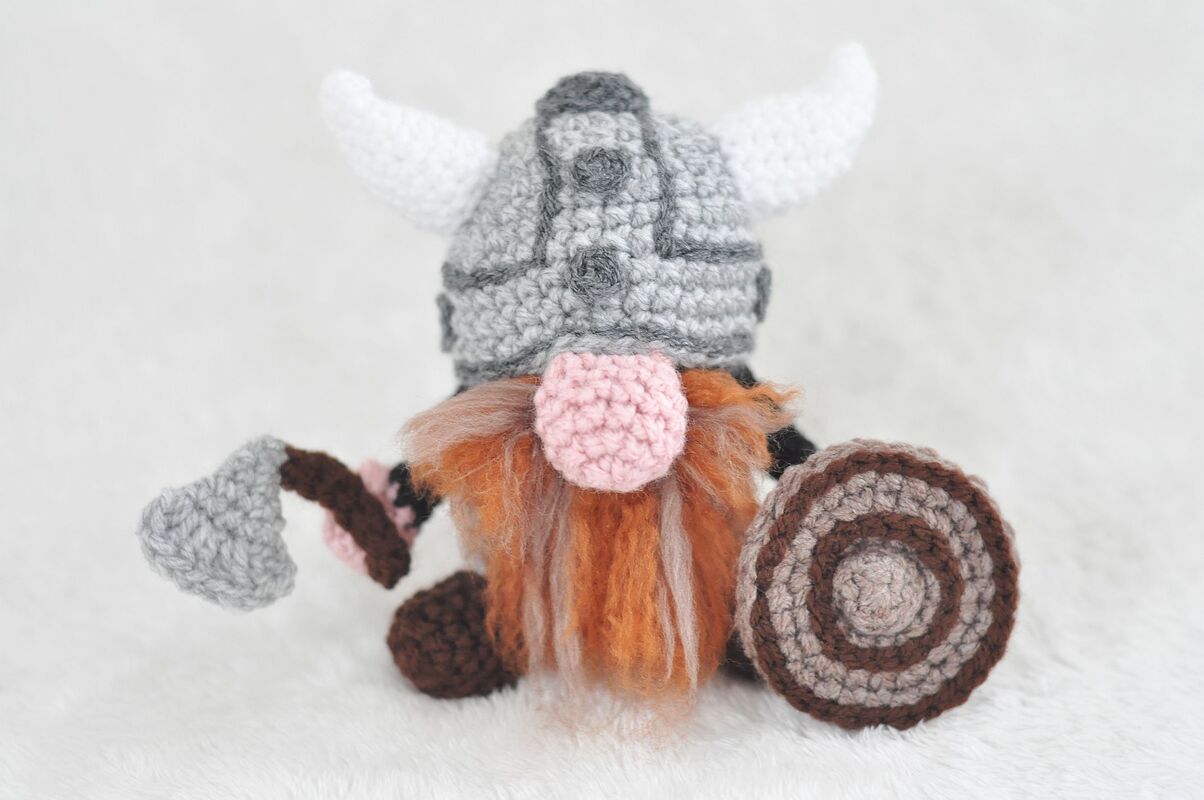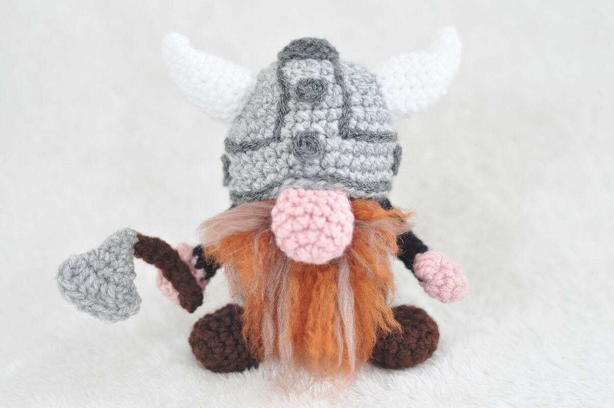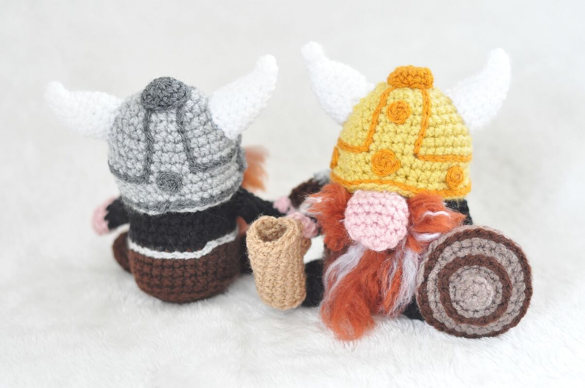 Discover the detailed crochet pattern for a charming Viking, complete with an axe, tankard, horn, and shield! This delightful project is perfect for crocheters of all skill levels and can be quickly and easily made from yarn scraps.