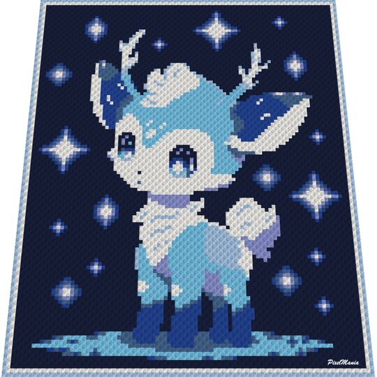 Cosmic Deer is a digital chart that can be used for different crochet techniques. Here: corner to corner = C2C or Mini C2C.