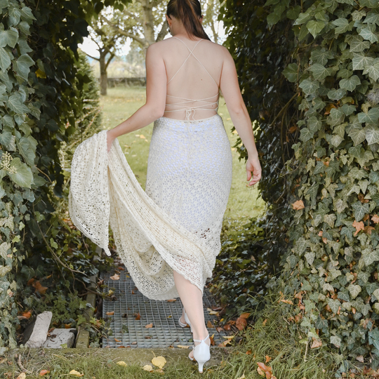 The dress is made-to-measure and is therefore suitable for every size and body shape.