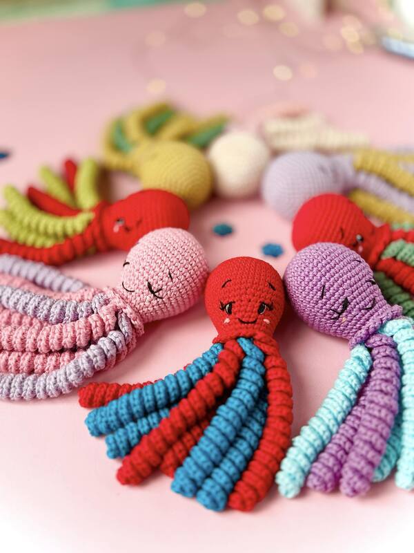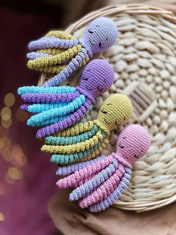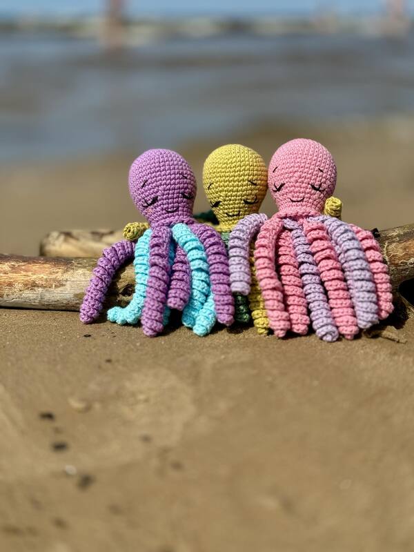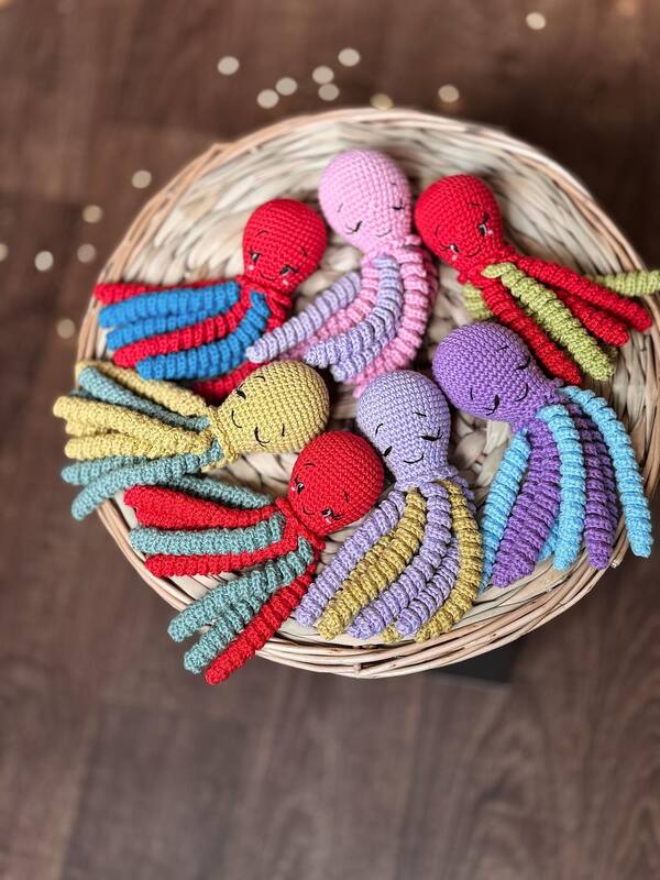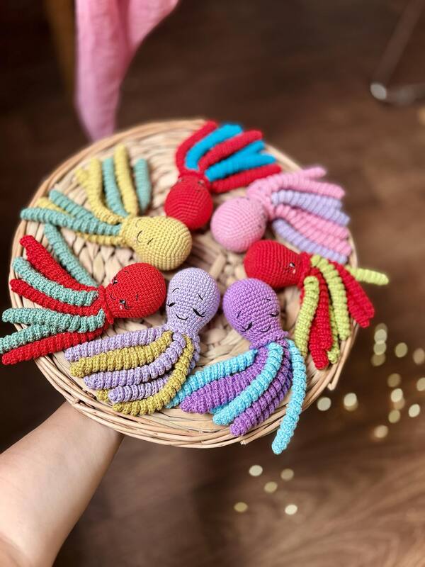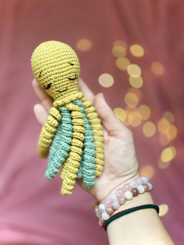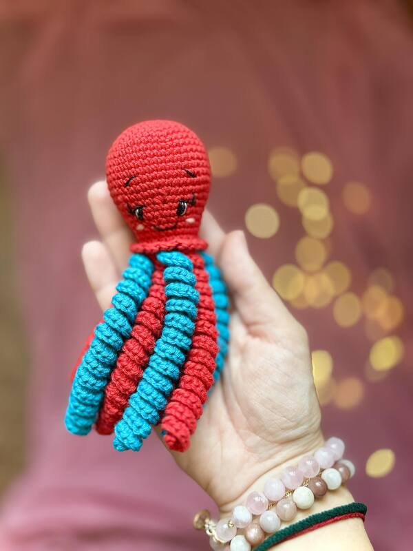 Crocheting helps us calm our minds and heal our hearts, and the finished octopuses carry the potential to spread joy, love, and support. The tentacles provide comfort and a sense of security, reminding babies of the environment they were used to before birth. This little octopus is perfect for gifting to those who need a bit of encouragement or a reminder that they are cherished.