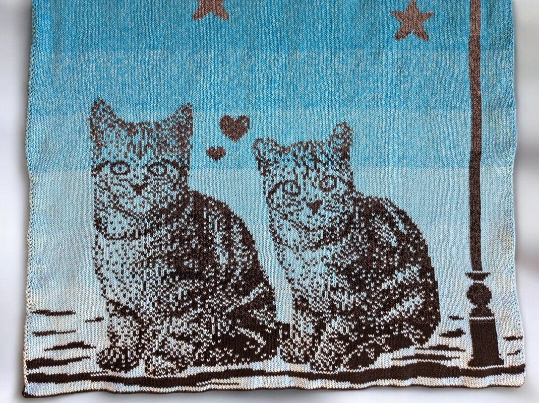 The blanket is knitted in the double knitting technique. Thus, it is extra soft and the motif shows on both sides.