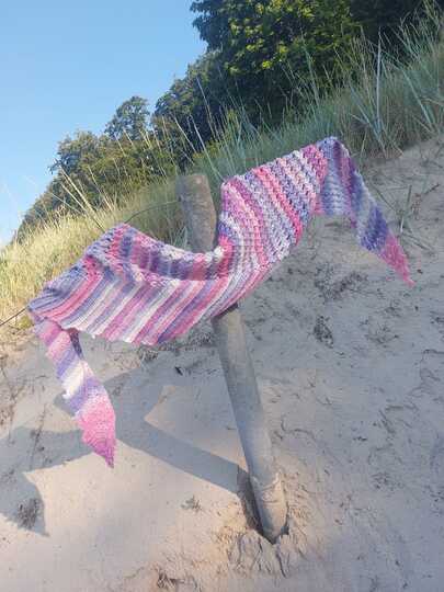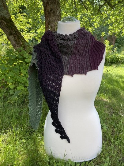 Lohemond is a scarf that is worked with increases at the beginning and stitches are decreased again at the end. This scarf has two points and is wider in the middle. The pattern is easy to memorize and is great to crochet along the way. Due to the shape, the scarf is also suitable for yarn from 800m.