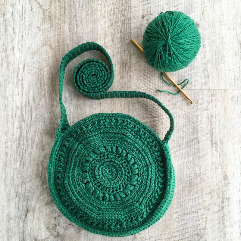 Crochet a romantic round bag with this crochet pattern. It goes with your everyday outfit but can also be worn to a festive occasion. Choose any yarn and make a unique accessory. Make a giant bag with bulky yarn or use a glittery yarn and make a shimmering it-piece for your wardrobe.