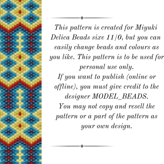 This pattern is created for Miyuki Delica seed beads size 11, but you can change colors and beads as you please.