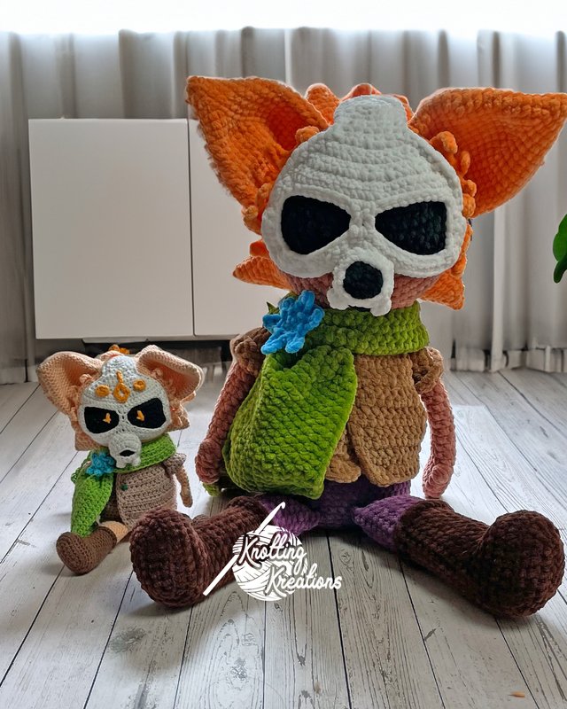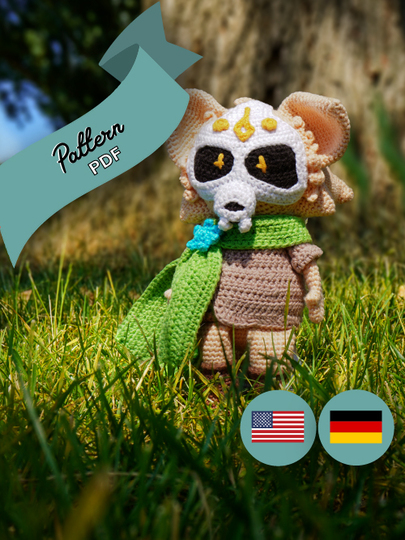 Vince is not just any fox. He is the intrepid protector of the Forbidden Forest, a cunning thief who moves silently among the shadows. But what makes him truly unique is his iconic skull mask, which he wears to conceal his true identity and intimidate his opponents. This mask is a symbol of deception and protection - and in my crochet instructions I have placed particular emphasis on bringing it to life with impressive detail.