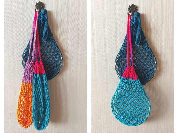 With the yarn and materials listed, the Classic Net Bag “Anna” will measure ca. 24 x 39 cm or 9,45 x 15,35 in (without the strap).