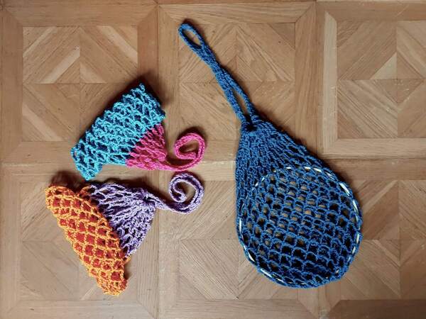 You'll need less than a 50g skein of cotton yarn or use up your stash.