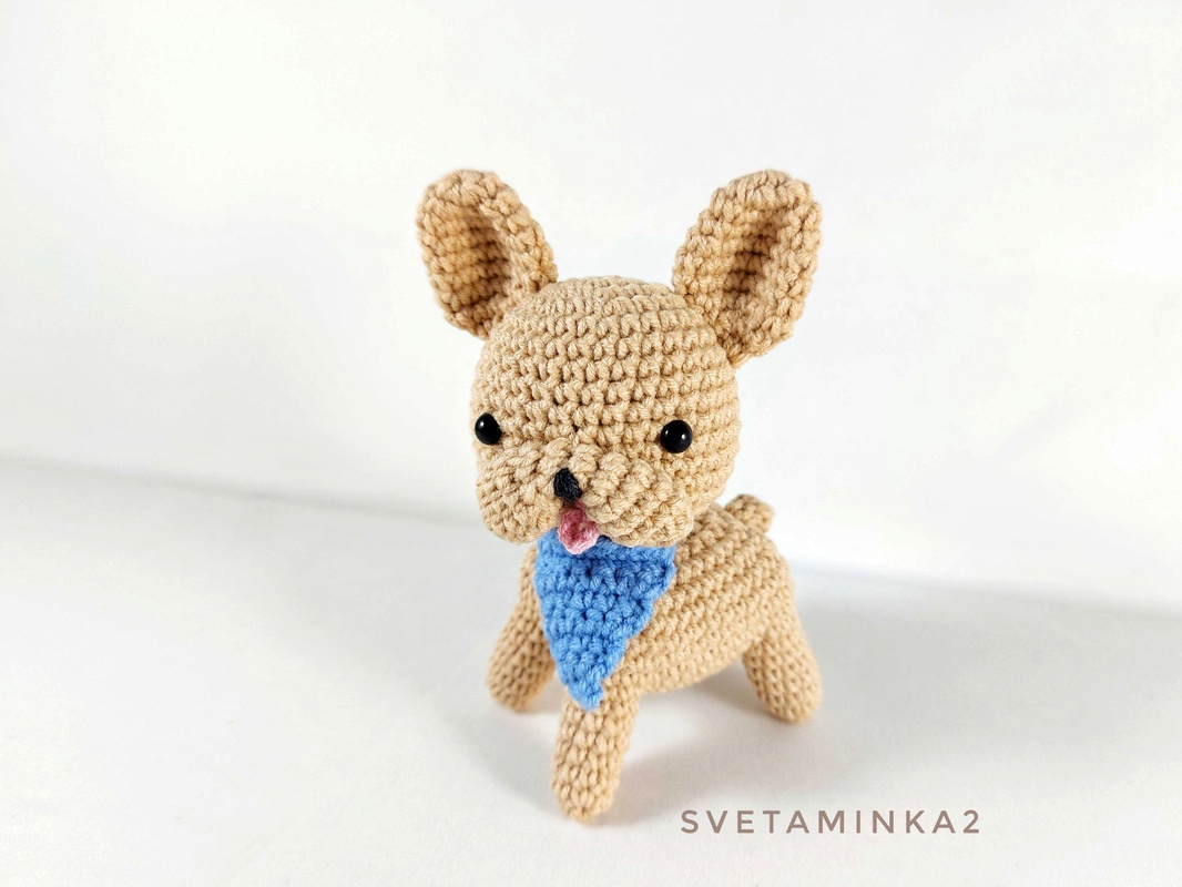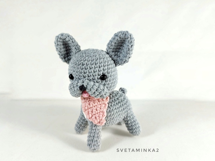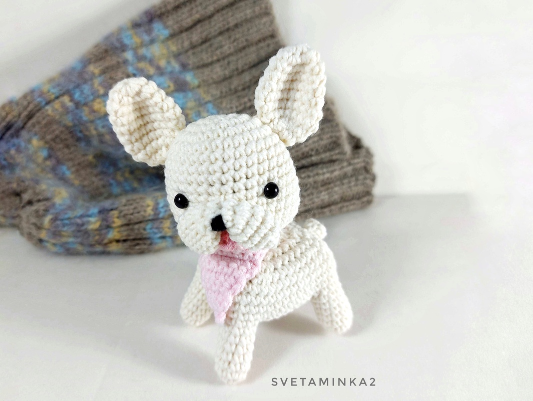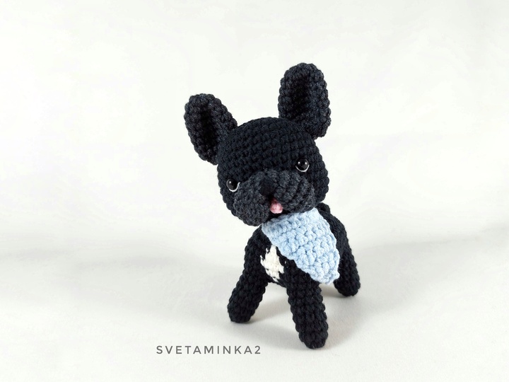 FRENCH BULLDOG: I used – YarnArt JEANS 55% Cotton 45%Pac (50g=160m) any color as the main one, a bit of black to embroider the nose, a bit of pink for the tongue, a bit of any color for the collar - 2,5 mm crochet hook - Polyester fiberfill for stuffing - Yarn needle, scissors, stitch markers or a piece of yarn, pins - 6 mm plastic eyes