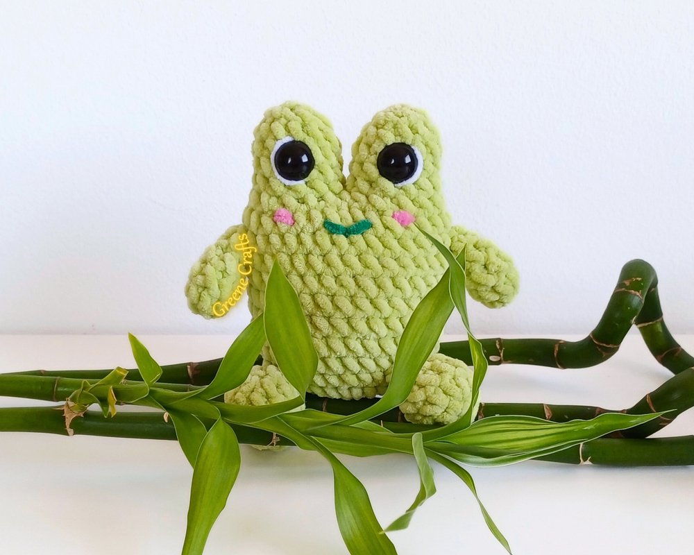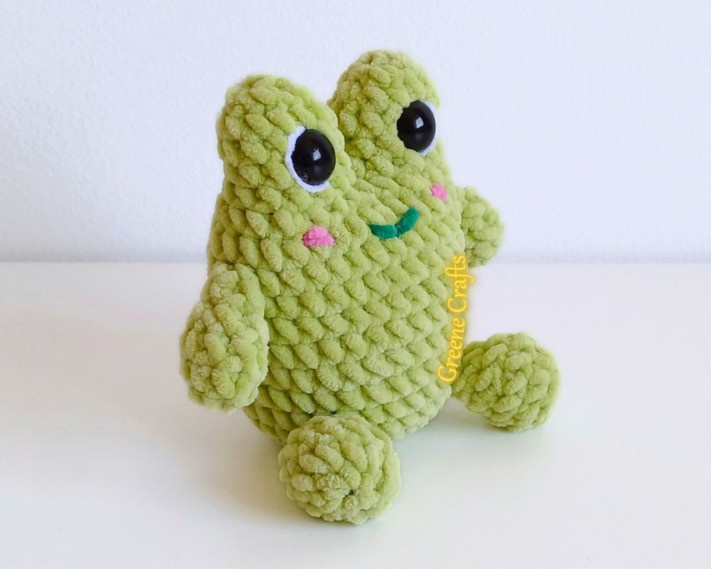 This pattern has the written instructions of Chubby Frog Plush Toy. The pattern is available only in ENGLISH and features clear, row-by-row instructions with lots of photos to guide you through the process.