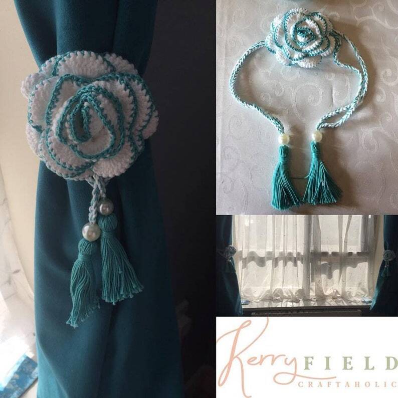 Special Addition for the written pattern - instructions how to turn my rose into gorgeous curtain tie-backs.