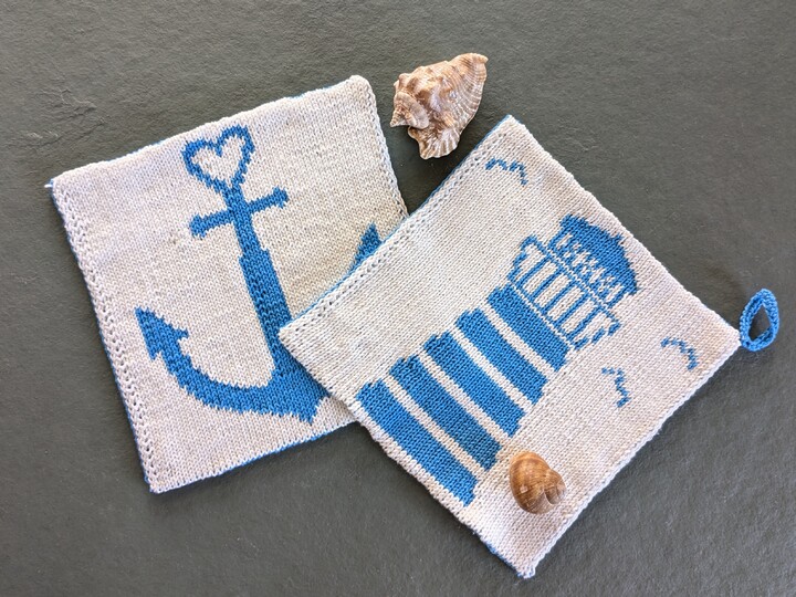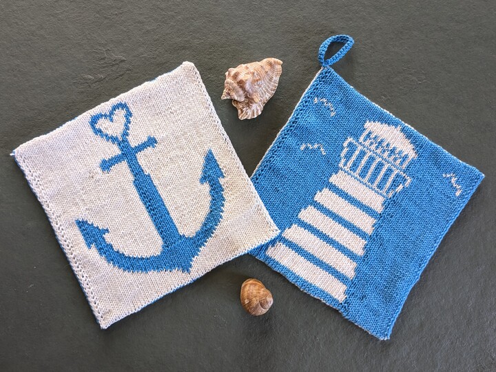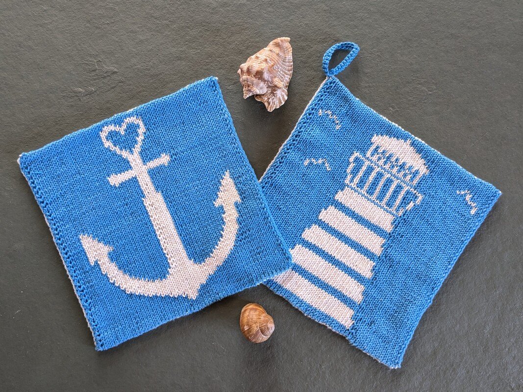 Your vacations are over, or you haven’t been away for a long time? If you're longing for the sea, you can knit these potholders to add a little maritime flair to your home. When you look at the two motifs, you can almost feel the salty air in your nose and hear the sound of the waves