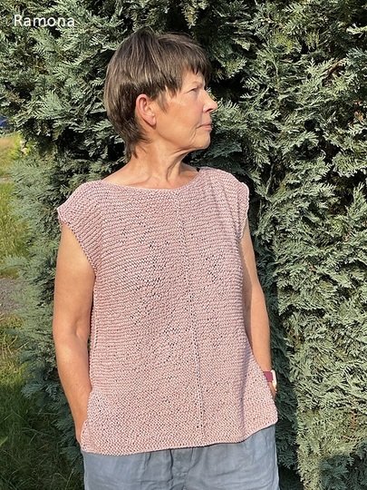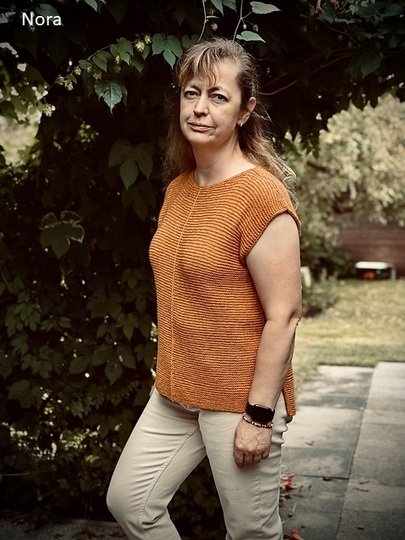 NIZZA is a seamless construction knit from the bottom up. Starting with a split hem, the body is joined in the round and then separated for front and back. The remainder is worked flat, shaping the shoulders with Short Rows and then finished with an exposed seam created using the