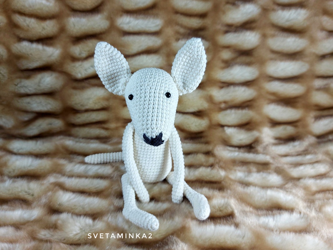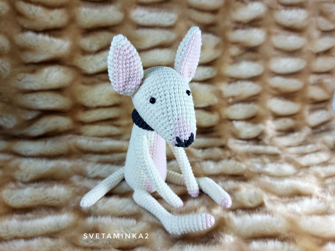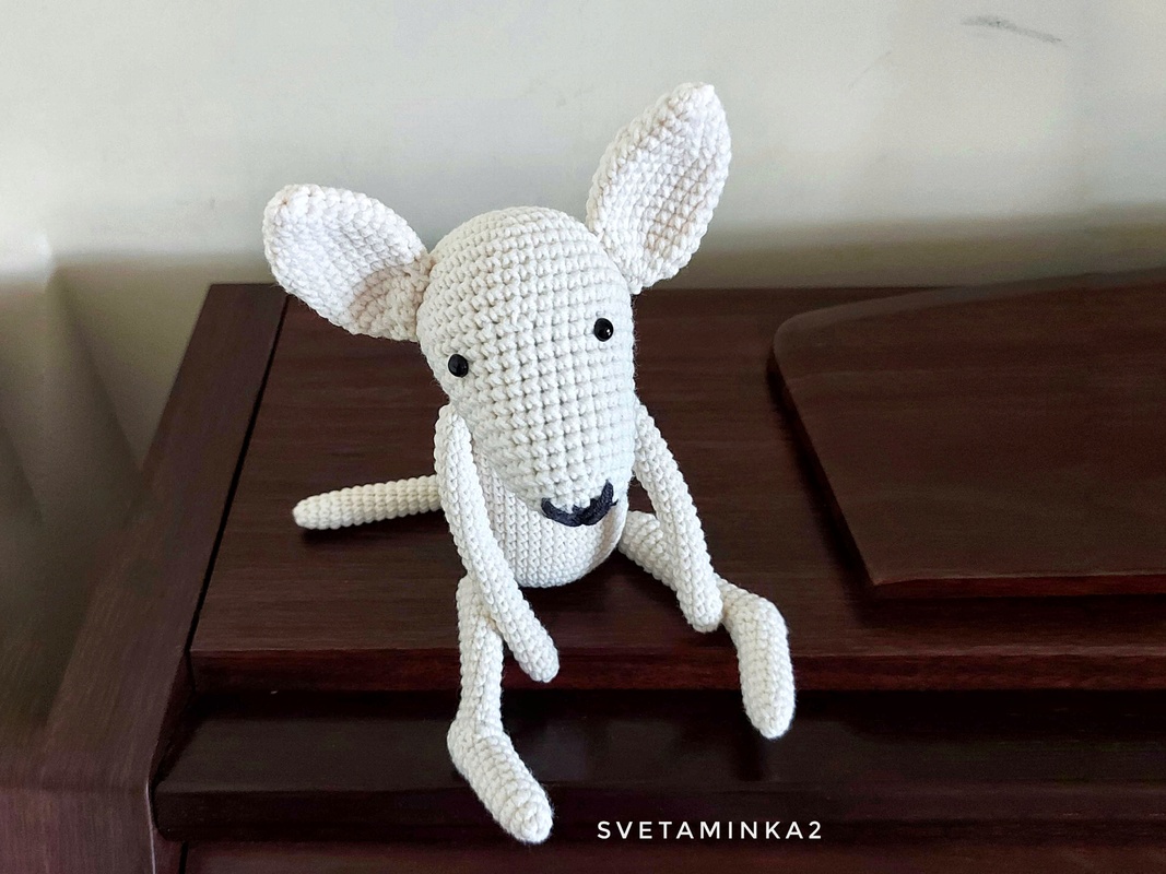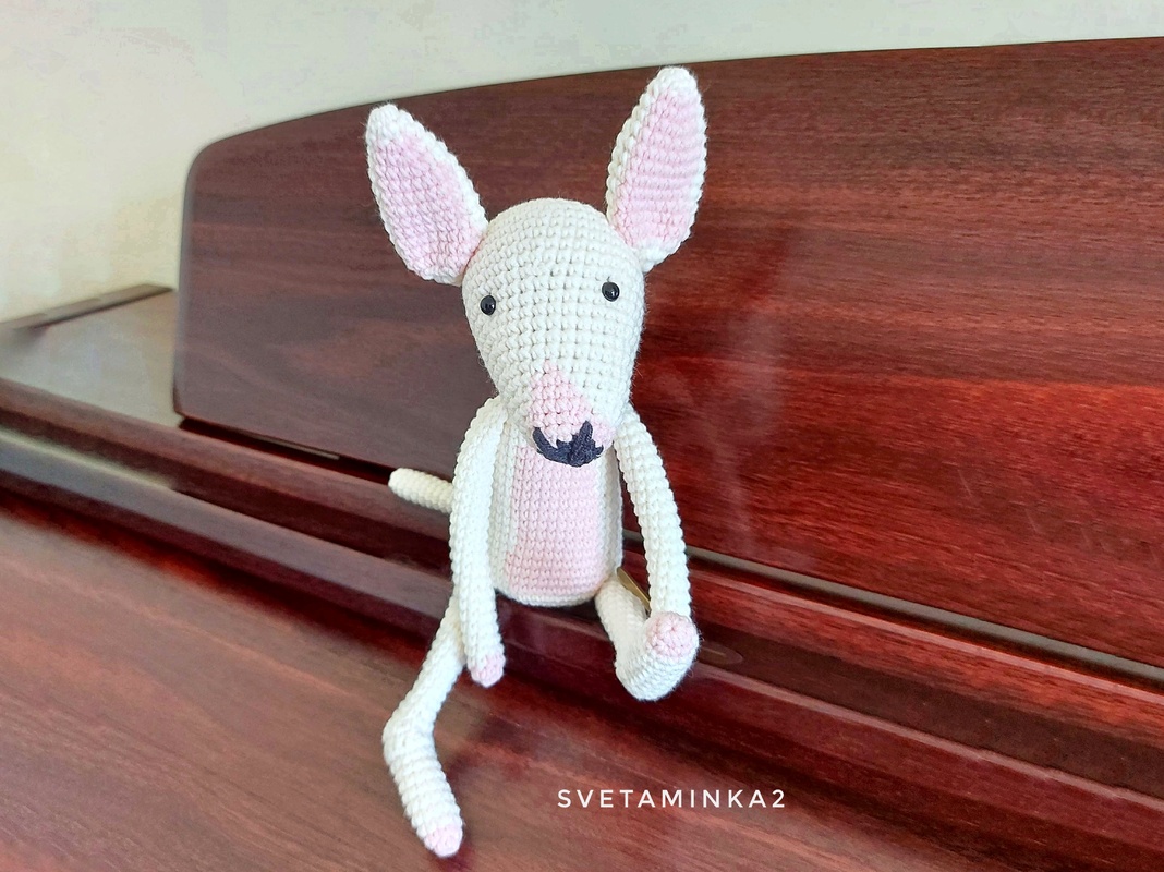 Bull Terrier Crochet Pattern to make a cute amigurumi dog of this breed. The Crochet Dog Pattern (pdf file) is in English (US terms), very detailed, very clear instructions and tips with lots of photos for each step. ( the original pattern of svetaminka2) If you are a fan of the bull terriers, then here there is another pattern for a more complex dog with a spot on the head!