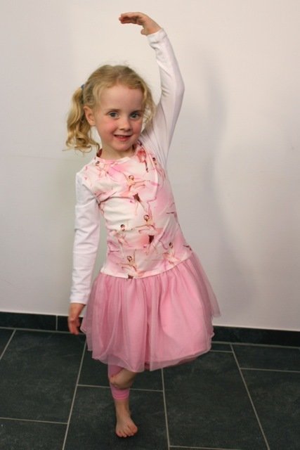 Would you like to sew a simple dress with a great effect? Then you are just right with this style. The outfit looks like a t-shirt worn over a skirt but it is actually sewn together. The top should always be sewn from a stretchable fabric such as Jersey and the skirt can be sewn from a soft falling fabric (e.g. baby cord, cotton wool or light denim fabrics). You will find the instructions for the tulle skirt in the eBook, too.
