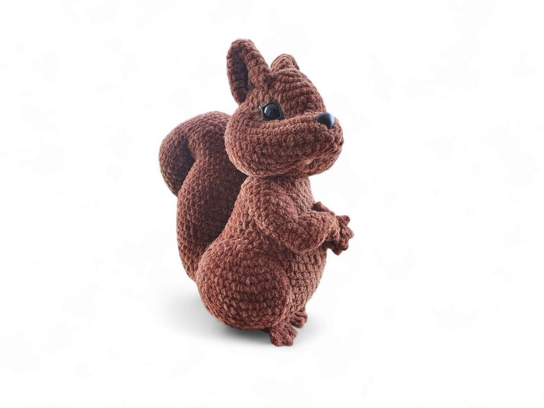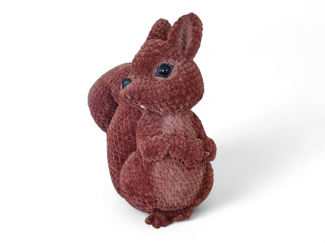 One instruction - two figures. With the help of these detailed and richly illustrated step-by-step instructions, you can easily crochet a cute squirrel in chenille or cotton. The squirrel's head is connected by a joint and can therefore be turned in all directions. This gives the squirrel even more charm. If it is crocheted in chenille, it is particularly soft and cuddly. However, the squirrel also cuts a fine figure in cotton.
