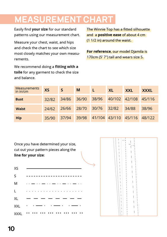 Sizes XS-XXXL are included in the pattern. The exact measurements of the sizes can be found in the size chart in the pictures.