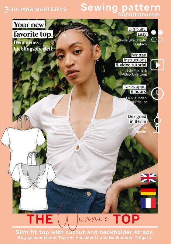 The pattern as a PDF ebook for your new halterneck top "The Winnie Top". With written, illustrated sewing instructions and free video tutorial on our YouTube channel JULIANA MARTEJEVS - The DIY fashion label or our website (see profile).