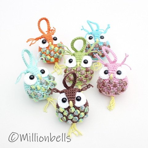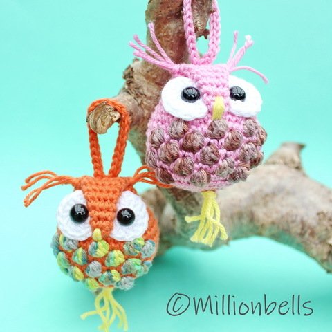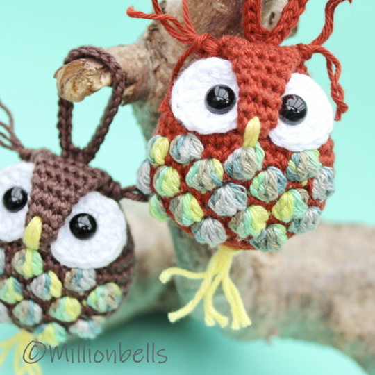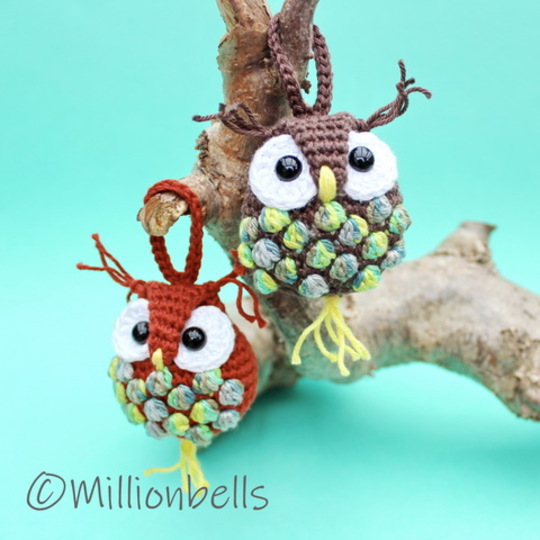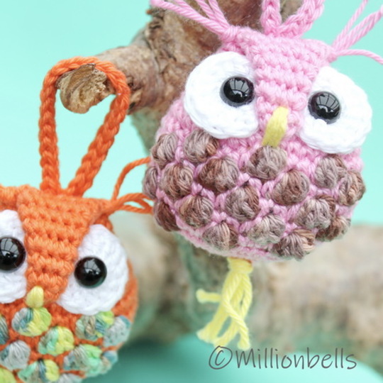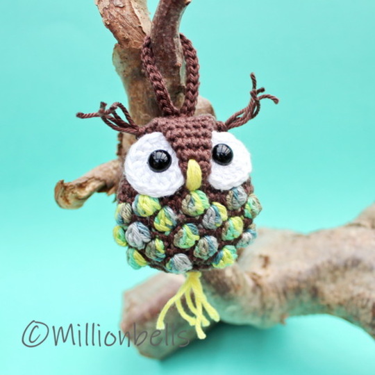 Because you will only need small amounts of yarn for a keychain like this, this is a lovely project to use your remnants of yarn. The owl will be worked in continuous rounds.