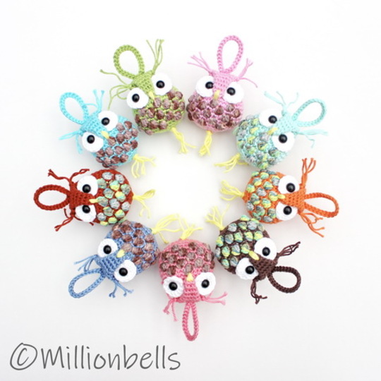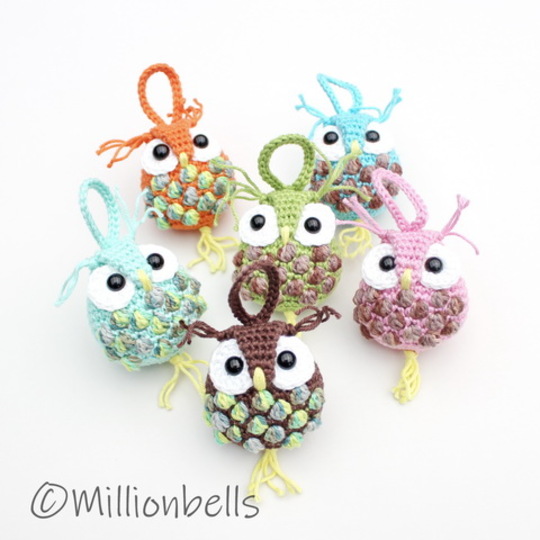 This pattern (US terms, amigurumi style) will guide you to crochet an adorable Owl Keychain, as shown in pictures, made using sport weight cotton yarn and crochet hook C (2.5 mm). You can use this keychain in different ways; as Christmas tree ornament, purse / back pack charm, rear view mirror charm, bookmark charm or hairband decoration.