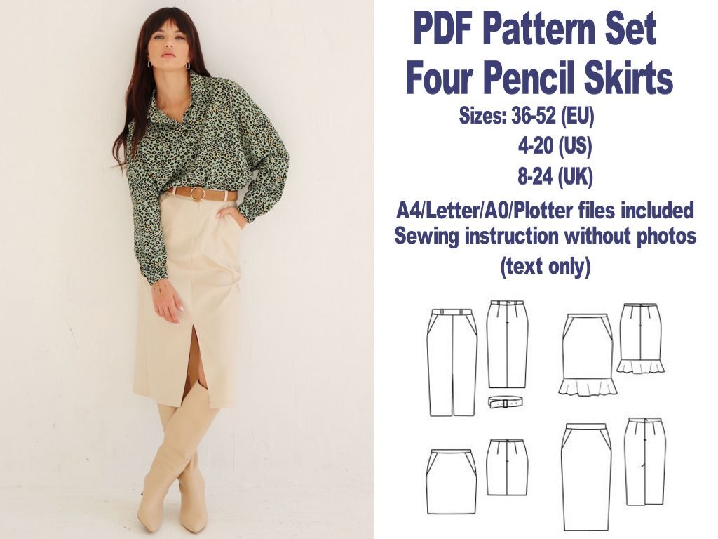 1) Option A - Midi pencil skirt with back vent, pockets and lining, invisible back zipper, finished length from waist – 70 cm;